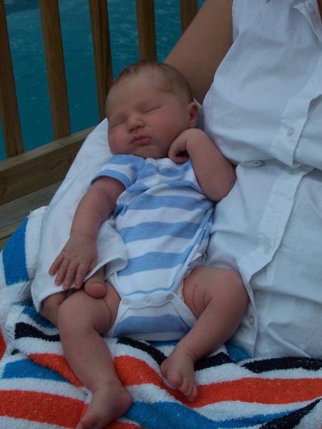 Big Kiss at his first July 4th Party. 4 weeks old.